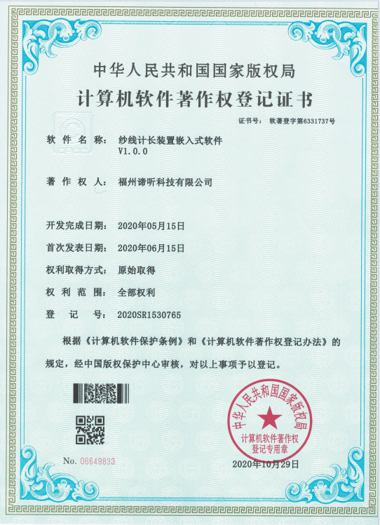 十一、纱线计长装置嵌入式软件V1.0.0